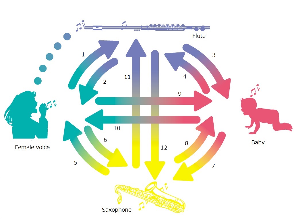 Type B: timbre of each sound does not vary. Flute to Soprano, wiht alpha: interplation parameter